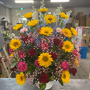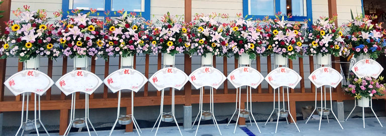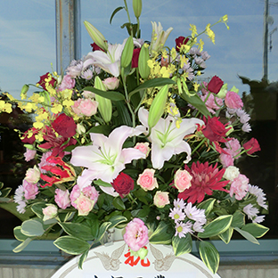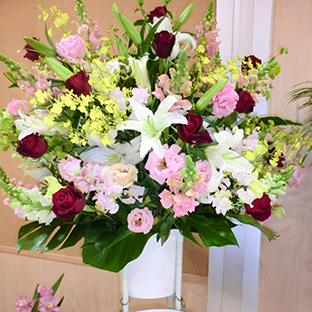 開店御祝、発表会には、入口に並ぶ祝スタンド生花、贈られる方だけでなく、その方のお客様への宣伝にも繋がる華やかな生花はご好評頂いております。 (1基11,000円~ご希望の金額に応じてご用意させて頂きます。) お通夜式、告別式の供花スタンド生花は、会館や式場により、お持ち込みできるスタイルが異なりますので、ご注文前にお問い合わせください。(1基11,000円~お受けしております。)